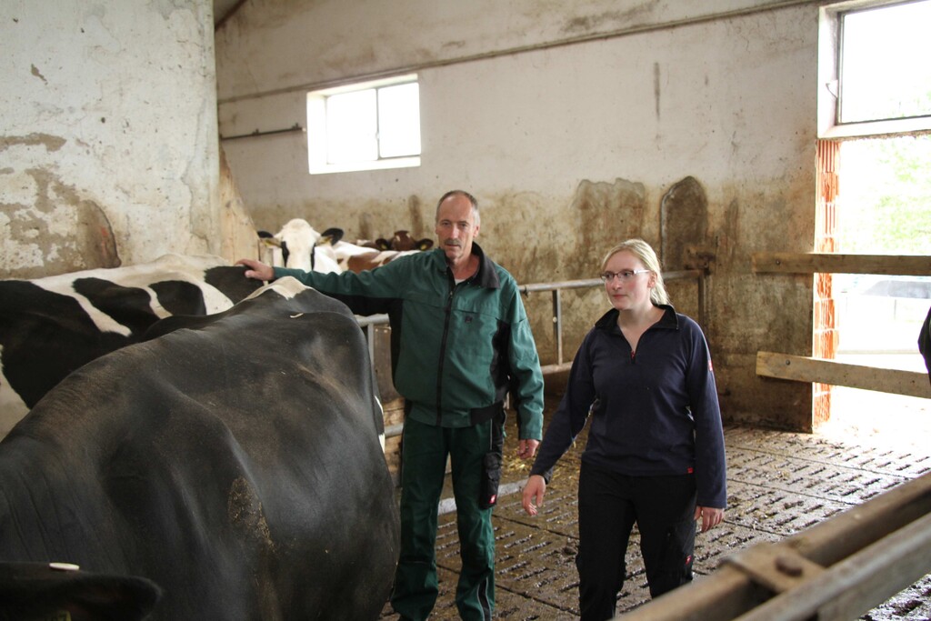 Sichtlich wohl fühlt sich Eva Bullinger im Milchviehstall, den sie zusammen mit ihrem Vater managt. Außerdem kümmern sich die beiden auch um den Großteil der anfallenden Arbeiten auf dem landwirtschaftlichen Betrieb (Ackerbau, Büroarbeit, Putenmast). Mit einer Ausnahme: Im Wald ist immer noch der 82-jährige Opa Karl der Chef. Und das soll vorerst auch so bleiben.