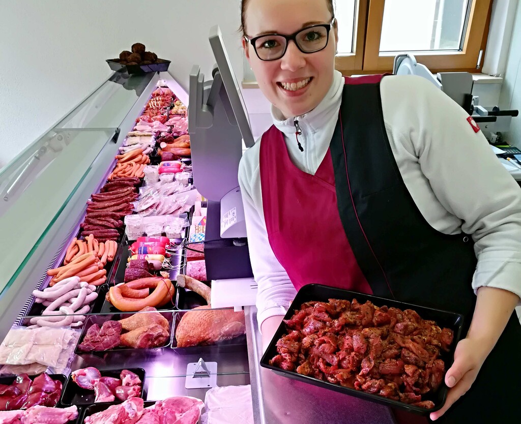 Zusammen mit ihrer Mutter Irmtraud Bullinger schlachtet, zerlegt und verarbeitet Mareike die hofeigenen Puten zu den im Laden angebotenen Produkten. Dafür gibt es einen fixen Zeitplan, der von dem Frauenteam Woche für Woche umgesetzt wird: Montags ist Schlachttag, dienstags und mittwochs werden die Puten zerlegt und donnerstags laufen die Vorbereitungen für den Verkauf im Hofladen, der freitags geöffnet hat. Unterstützung bei der Herstellung der Wurstprodukte erhalten die Bullingers von einem Metzger. Aber auch ihre eigene Kreativität kann Woche für Woche erlebt und genossen werden. „Ich überlege mir für jede Woche ein neues Rezept. Das erhalten die Kunden zusammen mit dem dafür benötigten Fleisch an der Ladentheke angeboten“, so die Jungunternehmerin. Der Start in die Direktvermarktung ist geglückt. Jetzt wird am Feinschliff gearbeitet: Die Verkaufsmengen genauer kalkuliert und am Vermarktungskonzept gefeilt. Und da ist jetzt die dritte Schwester Carolin gefragt, die als Marketing Managerin arbeitet und Kontakte zu Medienprofis zur Erstellung von Flyern und Homepage hergestellt hat. Außerdem ist sie für die kreative Gestaltung der Beiträge auf der Facebookseite der Guten Pute mitverantwortlich und hilft bei der Formulierung von Anzeigen.