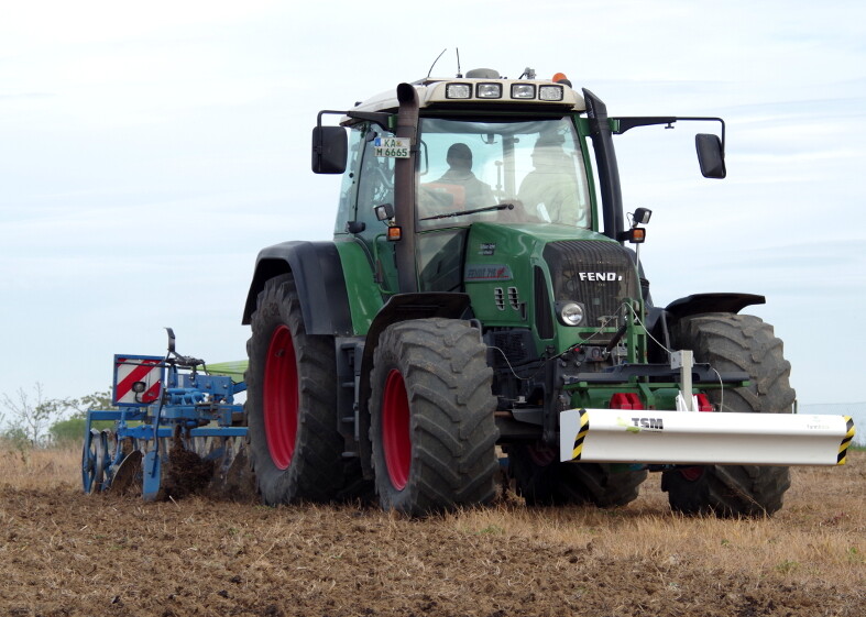 Für den gesamten Fuhrpark wurden feste Fahrspuren definiert. Bei den älteren Maschinen gibt es noch die USB-Technik, bei den neueren Maschinen geht es direkt übers Internet mit Telemetriedaten. Der Schlepper ist mit einem RTK-Lenksystem ausgestattet. Damit lässt sich beim Grubbern bis zu 20 Prozent Wendezeit gegenüber dem herkömmlichen Bearbeiten einsparen, beim Säen sind es sogar bis zu 30 Prozent. Zwar gilt der Kraichgau als Kornkammer Baden-Württembergs, doch gleichwohl sind die Schläge auch hier eher kleinstrukturiert. Während man für die großen Flächen in der Magdeburger Börde etwas mehr als 10 Prozent der Arbeitszeit auf das Wenden benötigt, sind es im Kraichgau immerhin rund 50 Prozent. Daran sehe man, dass sich mit 20 Prozent Wendezeitoptimierung viel Arbeitszeit einsparen lässt. Dies kann in einem feuchten Herbst entscheidend sein, ob man den Weizen noch rechtzeitig in den Boden bekommen oder nicht.