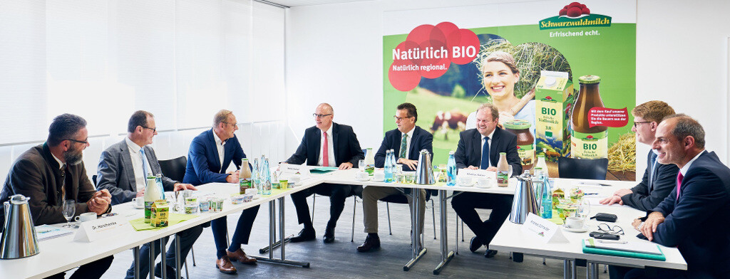 Andreas Schneider, Geschäftsführer der Schwarzwaldmilch-Gruppe führte den baden-württembergischen Landwirtschaftsminister Peter Hauk MdL, Dr. Roman Glaser, Präsident des baden-württembergischen Genossenschaftsverbands (BWGV), Dr. Ansgar Horsthemke, Generalbevollmächtigter des BWGV und Franz-Josef Holzenkamp, Präsident des Deutschen Raiffeisenverbandes durch die Molkerei. Nach einer Darstellung der Marktposition und positiven Entwicklung der Schwarzwaldmilch-Gruppe, erfolgte eine rege Diskussion über die aktuellen milchwirtschaftlichen Themen und Herausforderungen der Milchviehhaltung. Einheitlich zeigte sich die Meinung, dass die genossenschaftlichen Milchbauern für den Schwarzwald von höchstem Wert sind. Sie sorgen für den Erhalt des typischen Schwarzwälder Landschaftsbildes. Sie arbeiten täglich von früh bis spät, um für die Verbraucher qualitativ hochwertige Milch zu produzieren. Sie bieten Einheimischen und Touristen einzigartige Ausblicke auf saftig-grüne Weiden mit grasenden Kühen und idyllischen Höfen und sorgen dadurch für zahlreiche Arbeitsplätze im Tourismus, die vom besonderen Landschaftsbild im Schwarzwald leben.