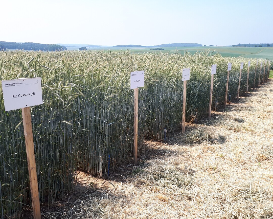 In den Landessortenversuchen (LSV) von Roggen gibt es eine intensive Variante (V2) mit Einsatz von Fungiziden und Wachstumsreglern und eine reduzierte Variante (V1) mit Verzicht auf Fungizide. Die Düngung ist in beiden Varianten identisch. Die mehrjährigen Erträge werden länderübergreifend nach Anbaugebieten errechnet (Tabelle 2). Winterroggen (pdf-Anhang, Tabellen 1 und 2) In den LSV Baden-Württemberg 2018 wurden in der unbehandelten Variante durchschnittlich 83,6 dt/ha geerntet, in der fungizidbehandelten 98,9 dt/ha. 2017 waren es 85,2 dt/ha bzw. 100,8 dt/ha, 2016 lag der Durchschnittsertrag bei 67,4 dt/ha bzw. 88,5 dt/ha. In Ladenburg kam es in diesem Jahr zu starkem Lager durch Unwetter. Rhynchosporium und Mehltau traten vereinzelt...