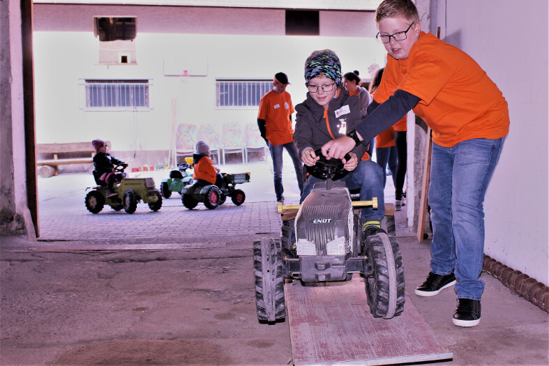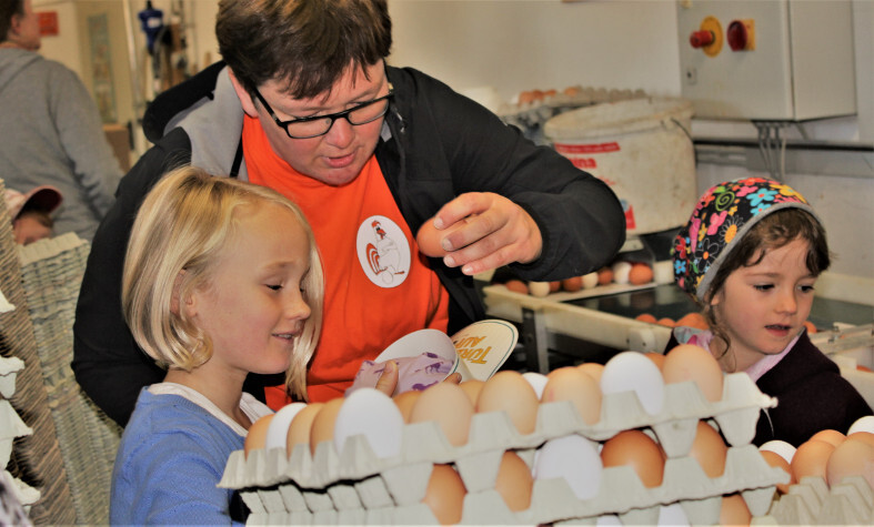 So durften sich auf dem Hühnerhof zahlreiche Kinder und ihre Eltern selbst ein Bild machen, wie das Ei auf den Frühstückstisch kommt, wo und wie Hühner heute leben und was sie fressen. Beim Eier sortieren legten die älteren Kids sogar selbst Hand an. Betriebsleiterfamilie Gudrun und Edgar Rimmele mit ihren fünf eigenen Kindern im Alter von vier bis 15 Jahren legten sich für diesen Tag mächtig ins Zeug und haben auf ihren Hof jede Menge Stationen aufgebaut: vom Schweinekino, Stiefelweitwurf, Wettmelken, Dosenwerfen, Pferde füttern bis zur Rundfahrt mit dem Trecker.