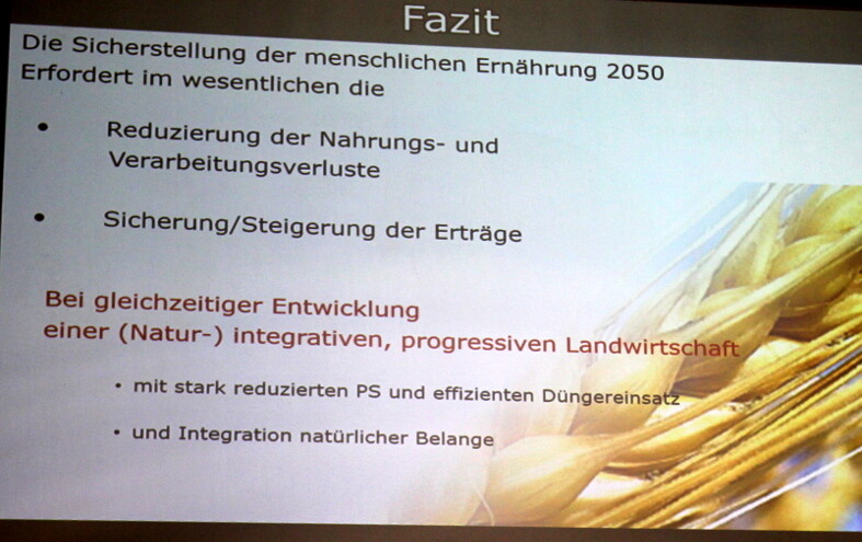 Mit Blick auf die ökologische Landwirtschaft rechnete Körner vor, dass die landwirtschaftliche Fläche in Deutschland exakt ausreiche, um die Bevölkerung zu ernähren. Wird der Öko-Anteil weiter ausgebaut, benötigt man mehr Anbaufläche. Bei 100 Prozent Bio- Landwirtschaft wären das 30 Prozent mehr Anbaufläche.