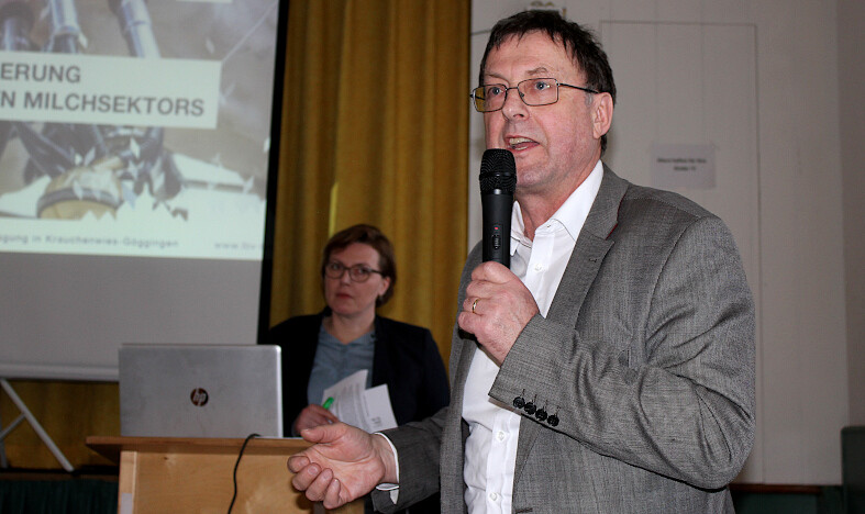 Neben knapp 100 Milchviehhaltern und Gästen konnte Gerhard Glaser, LBV-Vizepräsident, seinen Kollegen Peter Graf, BLHV-Vizepräsident sowie die Kreisvorsitzenden und deren Stellvertreter begrüßen. Glaser betonte, wie wichtig es ist, dass die Sorgen und Ängste der Bauern von der Gesellschaft wahrgenommen werden und lobte die dazu deutschlandweit stattfindenden Schlepperdemonstrationen. Derzeit gebe es seiner Meinung nach große Irritationen in der Öffentlichkeit über die Frage darüber, was Landwirte tun sollen und was nicht. „Wir, die wir diese Arbeit schon lange genug machen, wissen, dass wir in den letzten Jahrzehnten nichts Anderes getan haben, als den Wandel und die Verbesserung aktiv mitzugestalten.“ Umweltschutz, Tierschutz und Verbraucherschutz würden die Bauern seit Jahrzehnten leisten.