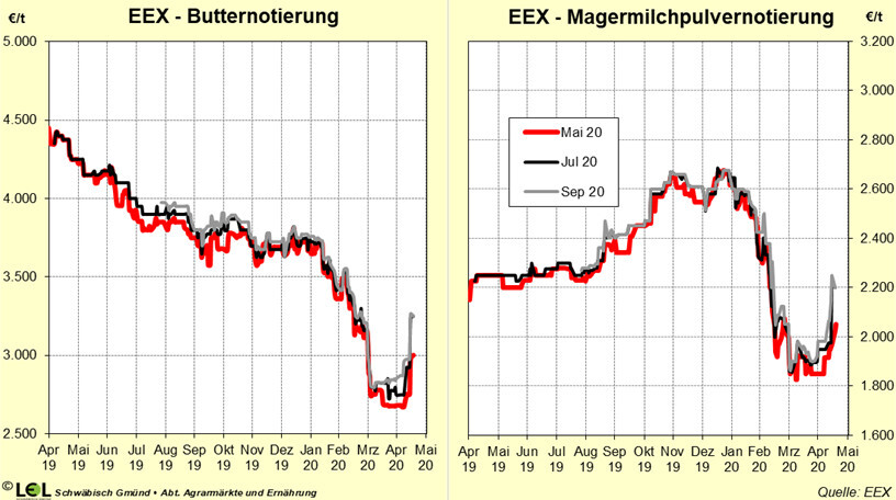 So positiv die Stabilisierungstendenzen auch sind, das Marktumfeld bleibt weiter schwierig. Global nehmen die Milchanlieferungen in der EU und in den USA wieder stärker zu. Die großen Exporteure lagen im März bei +1,8 Prozent, die EU bei +1,7 Prozent. In Deutschland waren es in der Kalenderwoche KW 18 +0,4 Prozent. Unter normalen Bedingungen könnte der Markt diese Mengen vielleicht ohne größeren Preisdruck aufnehmen. Mit den globalen Auswirkungen der Corona-Krise durch den Wegfall der gesamten Außer-Haus-Verpflegung und des Tourismus sowie der Erschwernisse im Export ist der Markt jedoch weiter aus dem Gleichgewicht.