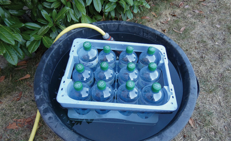 - Ausreichend Getränke, zum Beispiel Wasser, zur Verfügung stellen. Als Faustregel gilt: Bei großer Hitze stündlich zwei bis dreimal ausreichend Flüssigkeit ohne Koffein und ohne Alkohol trinken. Sicherstellen, dass Mitarbeiter ggf. eine mobile Toilette benutzen können.
