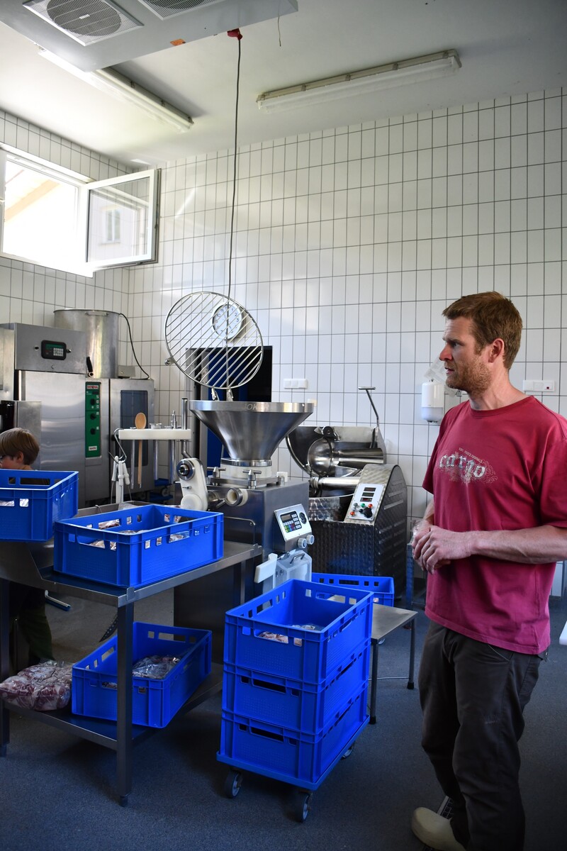 Mit im Betrieb arbeiten drei Männer mit Minijob, eine Vollzeitkraft im Hofladen sowie ein Metzger in Vollzeit. Denn als vor vier Jahren der vorherige Schlachter seine Tätigkeit einstellte, entschieden sie sich, hinter den Hofladen ein eigenes Schlachthaus zu bauen.