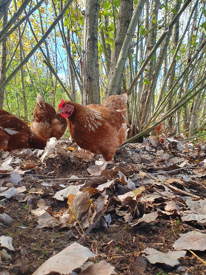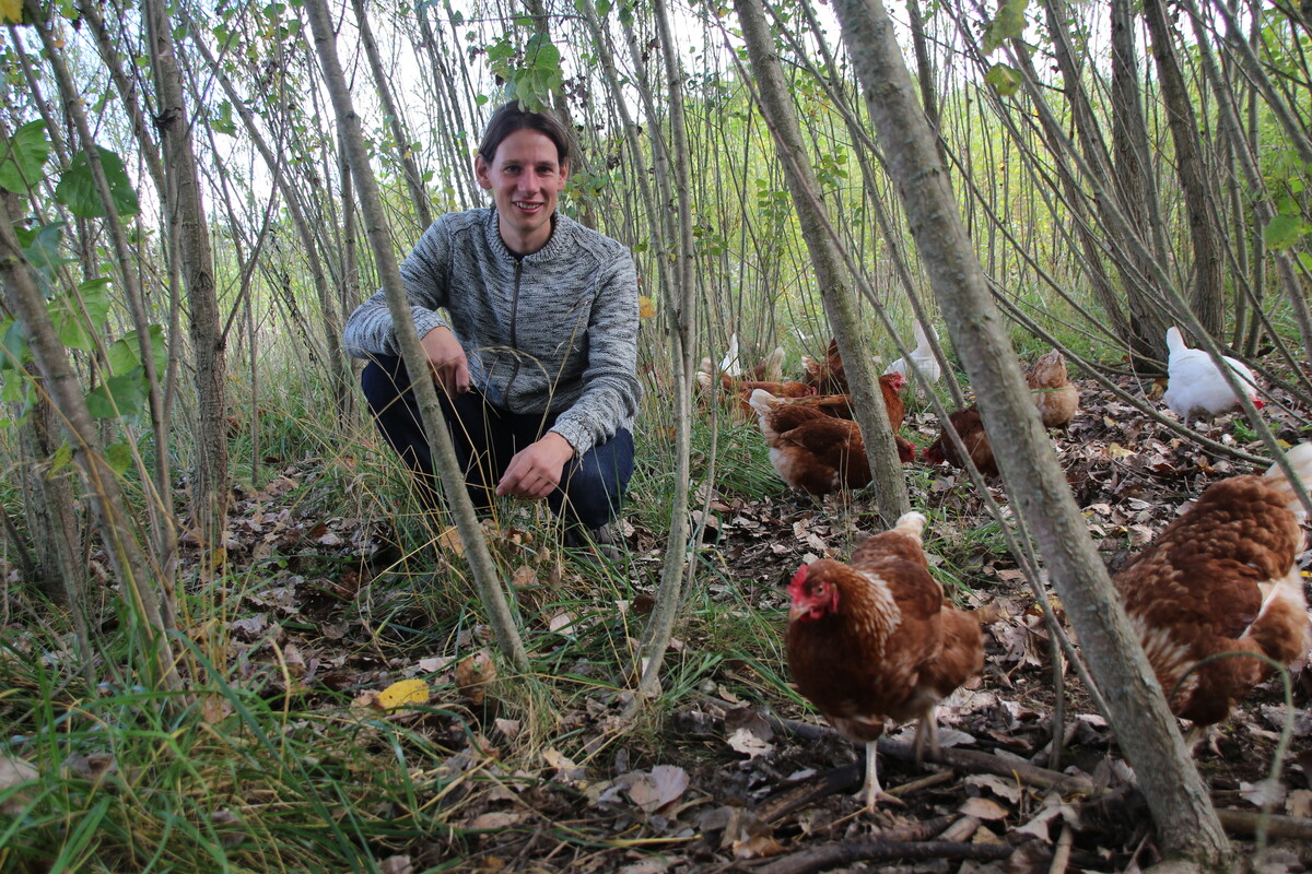 Legehennen in der Kurzumtriebsplantage