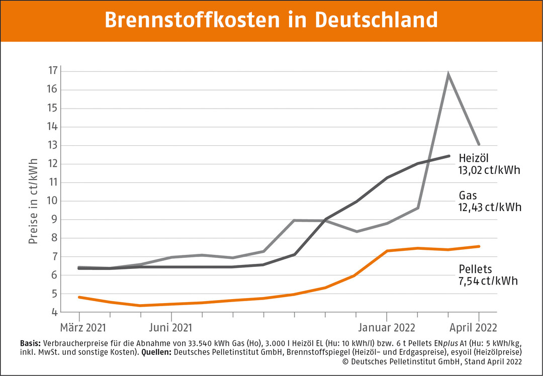 „Trotz krisenbedingt deutlich gestiegener Produktions- und Logistikkosten bleiben Holzpellets im Vergleich zu den fossilen Brennstoffen weiterhin deutlich günstiger“, erklärt Depi-Geschäftsführer Martin Bentele. Dem Branchenexperten ist wichtig, auf die Wertschöpfung vor Ort hinzuweisen, die Pellets ermöglichen. Damit schütze man nicht nur das Klima, sondern auch viele Firmen im Bereich Brennstoffe und Anlagenbau.