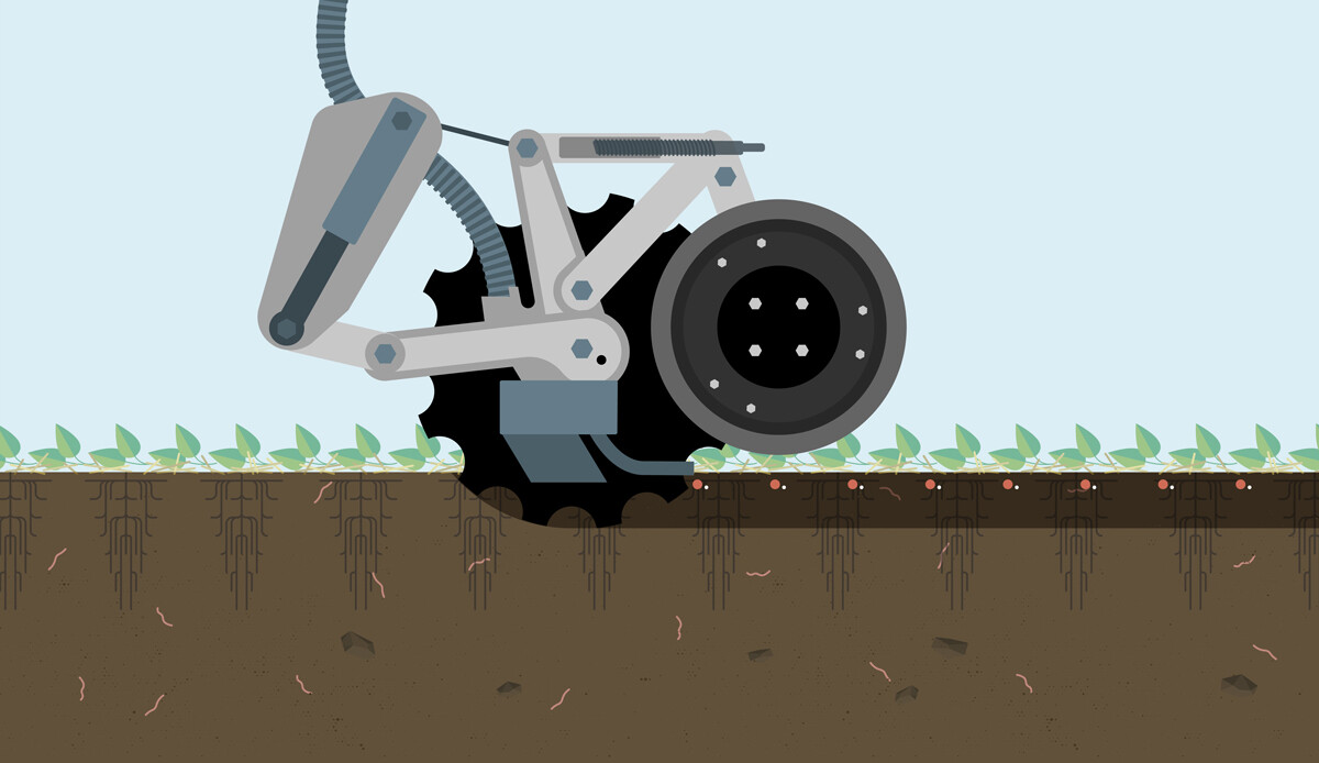 Dank des hohen Schardrucks von bis zu 500 kg je Säschar garantiere das T-SlotPlus System auch bei schwierigen Direktsaat-Bedingungen mit starkem Biomasseaufwuchs eine optimale Ablage und bearbeite den Boden dabei nur minimal. Das schütze ihn vor Austrocknung und soll den Unkrautdruck senken.