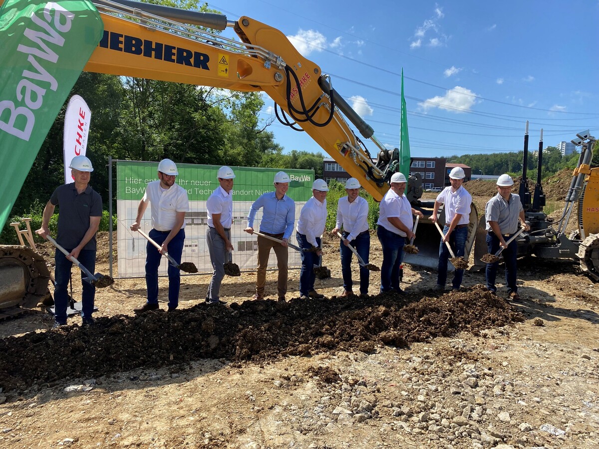 Der Startschuss für den Bau des neuen Betriebs in Nürtingen ist gefallen, teilt die BayWa mit. Am 23. Juni setzte das Unternehmen gemeinsam mit Vertretern der Stadt und des Bauunternehmens den Spatenstich an der Max-Eyth-Straße im Gewerbegebiet Steinach 3. Die Bayern investieren dort 6,5 Mio. Euro in den Neubau eines Agrarstandorts, einer Servicewerkstätte, eine Mostobsterfassung, in Lager- und Ausstellungsflächen sowie Verkaufs- und Büroräume.