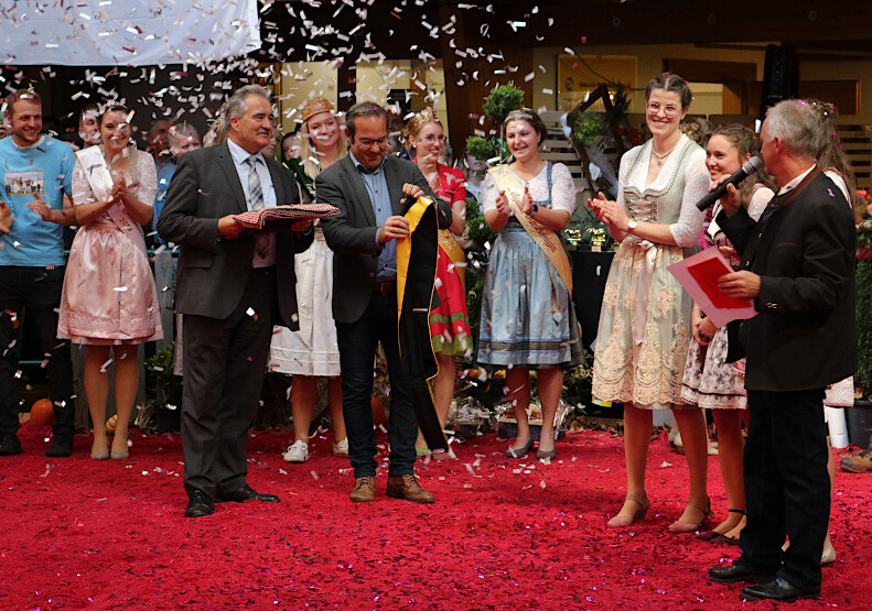 Der Braunviehtag findet alle zwei Jahre in Abwechslung mit dem oberschwäbischen Fleckviehtag statt, nach einer Zwangspause wegen Corona zuletzt im Jahr 2018. Umso größer war die Freude unter den Züchtern und Braunviehfans jetzt wieder persönlich zusammenzukommen. Nach Bad Waldsee eingeladen hatte das Brauviehforum, die Rinderunion Baden-Württemberg e.V. und der Jungzüchterverband. „Wir dürfen froh sein, dass so viele Zuschauer da sind und dass wir drei tolle Bewerberinnen für die Königinnenwahl haben. Die amtierende Königin Regina Dilger ist jetzt schon vier Jahre lang im Amt, weil man 2020 wegen Corona keinen Braunviehtag abhalten konnte“, berichtet der Vorsitzende der RBW, Josef Volkwein.