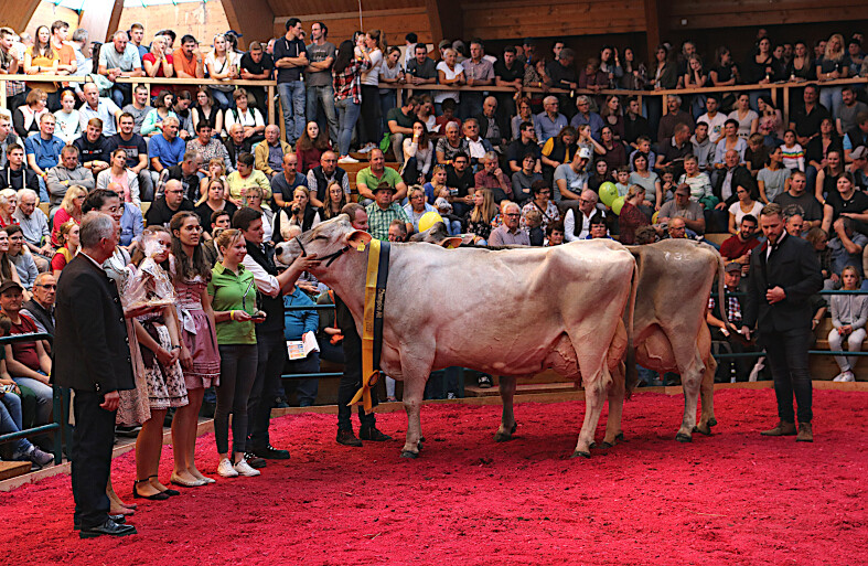 Positiv überrascht über ein so umfangreiches und breites Publikum ist auch RBW-Braunvieh-Zuchtleiter Dr. Alfred Weidele. Die Qualität der vorgestellten Zuchttiere sei hervorragend. Mit Blick auf die Absatzmärkte für die Rinder allgemein und die Auktionspreise meint er: „Rinder sind extrem gefragt. Wir liegen im Schnitt zwischen 2300 und 2400 Euro bei den Auktionen über alle Rassen hinweg. Das sind gut 500 Euro mehr als im Vorjahr.“ Grund dafür sei die gute Futtersituation südlich der Donau sowie der solide Milchpreis. Die explodierenden Produktionskosten zum Beispiel für Spritzmittel und Dünger seien auf vielen Betrieben noch nicht so richtig angekommen, schätzt Weidele.
