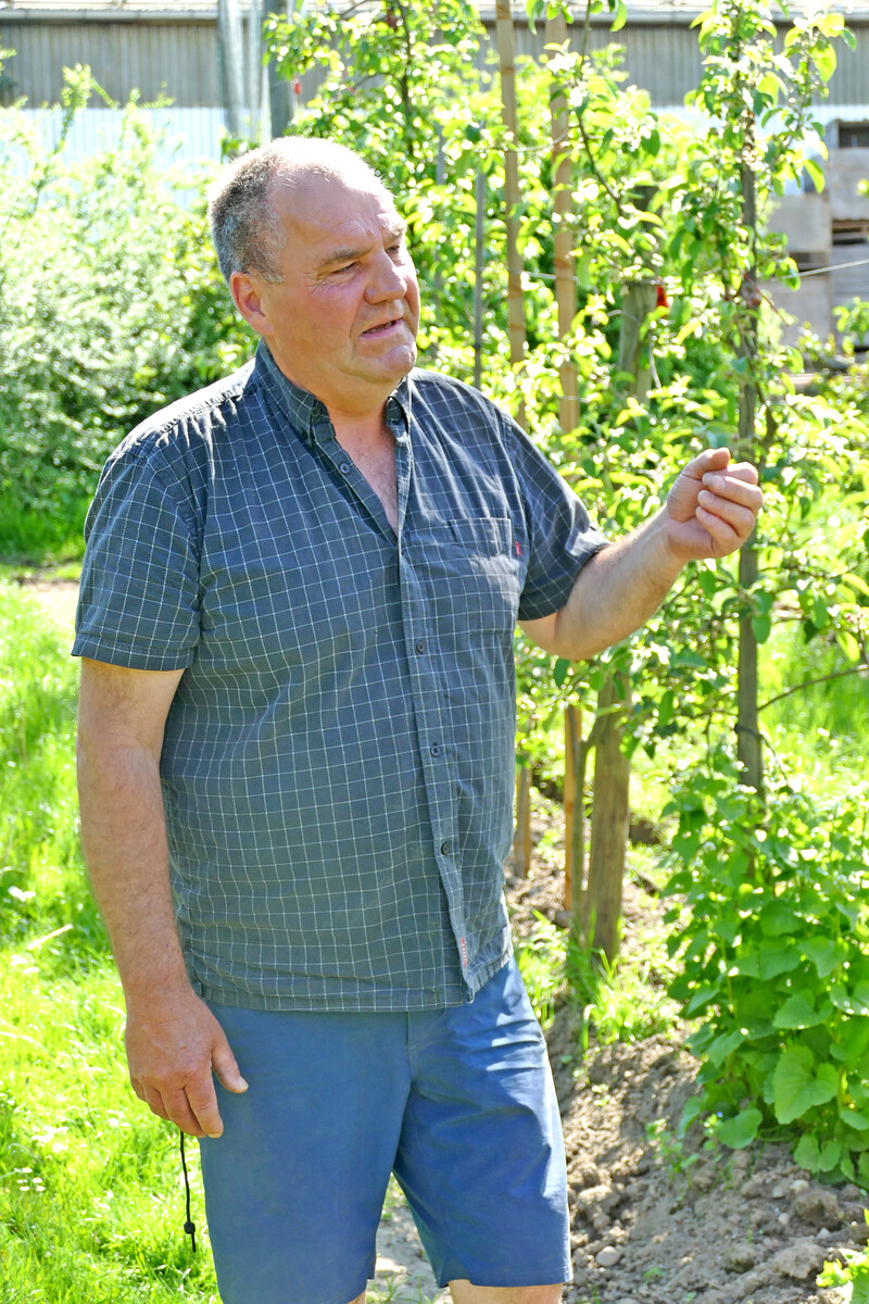 „Ich sah mich nach Alternativen um, denn das passte nicht zu meiner Einstellung des Wirtschaftens”, so der Obstbauer. Fündig wurde er in Südfrankreich bei einem Zusammenschluss von Landwirten, die die Küste von Braunalgen säubern müssen. Die Algen kommen pelletiert auf seinen Hof. „Die Regenwürmer rasten aus, wenn ich die Algen verteile”, erzählt er begeistert. Weitere Dünger sind Schlempe, ein Abfallprodukt aus einer nahegelegenen Biobrauerei, und ein Abfallprodukt aus der Verarbeitung von Biokartoffeln. Damit funktioniert es gut. „Ich kann keinen Unterschied im Ertrag und in der Qualität der Äpfel feststellen”, sagt er. „Man muss mehr mitdenken und beobachten, was passiert. Man muss hinter der Methode stehen, sonst funktioniert es nicht”, ist seine Überzeugung.