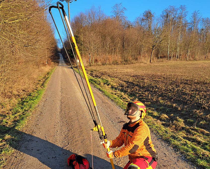 Werden Seile in Bäume eingeschossen, kann ein Auslöser an der Schleuder nicht nur für eine bessere Trefferquote sorgen. Ein solcher „Trigger“ reduziert zudem das Unfallrisiko und die körperliche Anstrengung. Das meldet die SVLFG.