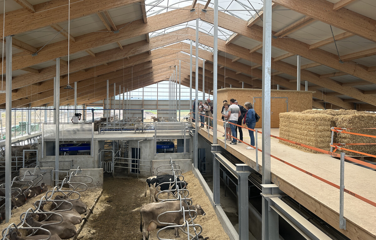 Die beiden Junglandwirte Heckenberger und Hecht haben gemeinsam eine Hofstelle gekauft und einen neuen Stall gebaut, in den die Tiere erst vor wenigen Monaten eingezogen sind. "Das Tierwohl steht bei uns ganz oben auf der Prioritätenliste", so die beiden Junglandwirte bei der Besichtigung des Licht durchflutenden Stalles, gebaut für 210 Milchkühe, mit vier Melkrobotern sowie einem Kälberstall, plus Fahrsilos und Güllelager.