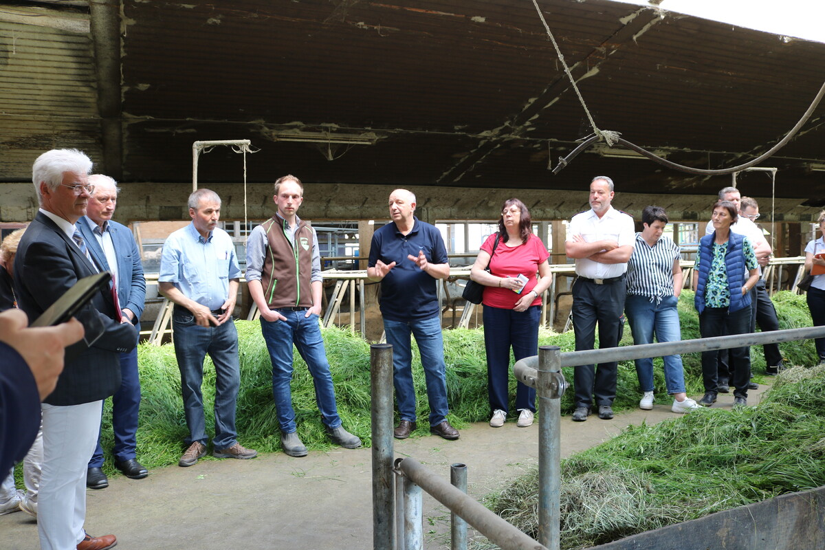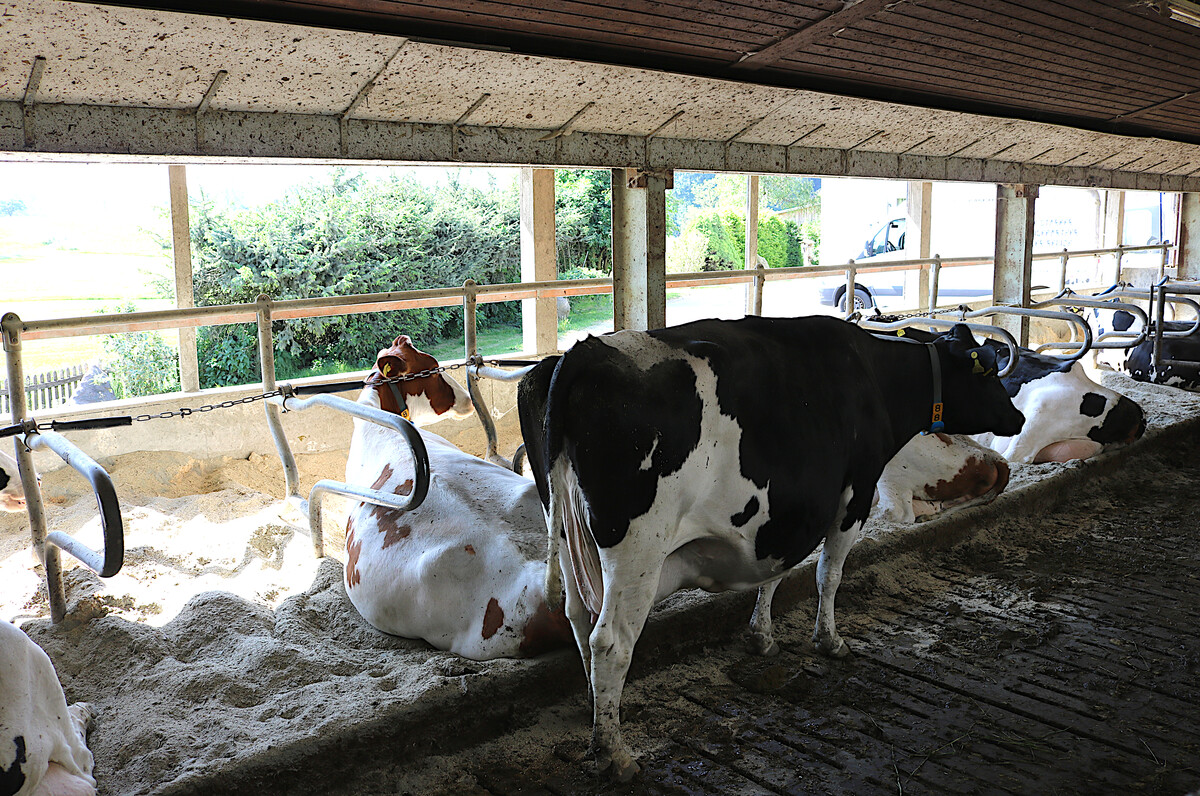 Familie Sigg bewirtschaftet ihren Betrieb mit knapp 100 Milchkühen seit 2006 biologisch. Zuvor im Landkreis Biberach angesiedelt, hat der Großvater von Jakob Sigg im Jahr 1966 die Hofstelle in Leupolz gekauft, die der Vater Klaus Sigg weiterentwickelt hat. 2002 wurde der Stall erweitert und umgebaut. Der Stall ist offen und gut durchlüftet. Gemolken wird mit Unterstützung von drei 450-Euro-Kräften im Swing-Over-Melkstand mit zweimal 16 Plätzen. Vor vier Wochen durfte Jakob Sigg, der auch Vorsitzender des Agrargesprächskreises ist, den Betrieb offiziell übernehmen und kann nun in der dritten Generation neu durchstarten, so der Plan. Die Kühe - Holstein Frisian, Red Holstein, Holstein Frisian gekreuzt mit Brown Swiss - geben im Schnitt 8500 Liter Milch pro Kuh und Jahr und liegen mit einer Nutzungsdauer von 72 Monaten über dem Durchschnitt der Milchviehbetriebe im Land. Gefüttert werden sie mit Gras und Heu sowie einer hofeigenen Getreidemischung. Für die Tiere gibt es täglichen Weidegang. Mit dem ersten Schnitt dieses Jahr zeigte sich Sigg sehr zufrieden.