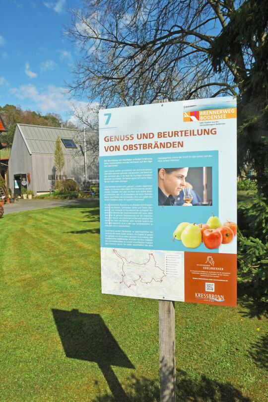 Lose deshalb, weil sie keine Verein ist, aber dennoch fest, weil sie das gemeinsame Interesse, die Brennereien und ihre Verankerung im Tourismus voranzubringen, verbindet. Darum der Brennerweg. Die Idee dazu hatten zunächst Dietmar Opitz und Bernd Brugger. Die beiden haben 2014/16 gemeinsam die Brennerausbildung in Offenburg absolviert und lernten dort in der Region Brennerwege kennen. „Das sollte doch auch bei uns am Bodensee funktionieren“, waren sich die beiden einig. Sie fanden vor Ort rasch Mitstreiter, stießen aber auch auf Hindernisse. „Es haben weniger Kollegen Interesse signalisiert als von uns erwartet“, resümieren die Initiatoren, „immerhin existieren hier in Kressbronn rund 100 Brenngenehmigungen.“ Ein weiteres Hindernis: die Finanzierung. Der frischgewählte Bürgermeister reagierte zunächst zurückhaltend auf die Idee, als ihm dann aber die acht Brenner die Bedeutung ihrer Zunft für die Verwertung des Obstes und den Erhalt der Kulturlandschaft verdeutlichten, schlug seine Skepsis in Begeisterung um. In der Folge wurden ein bedeutender Haushaltsposten für die Einrichtung des Brennerwegs festgelegt. Pläne wurden gemacht, die Texte geschrieben, die Schilder entworfen und produziert – dann kam Corona. Eingeweiht wurde der Weg im Juni 2021 trotzdem, aber ohne Minister, Staatsekretärin und sonstige Prominenz.