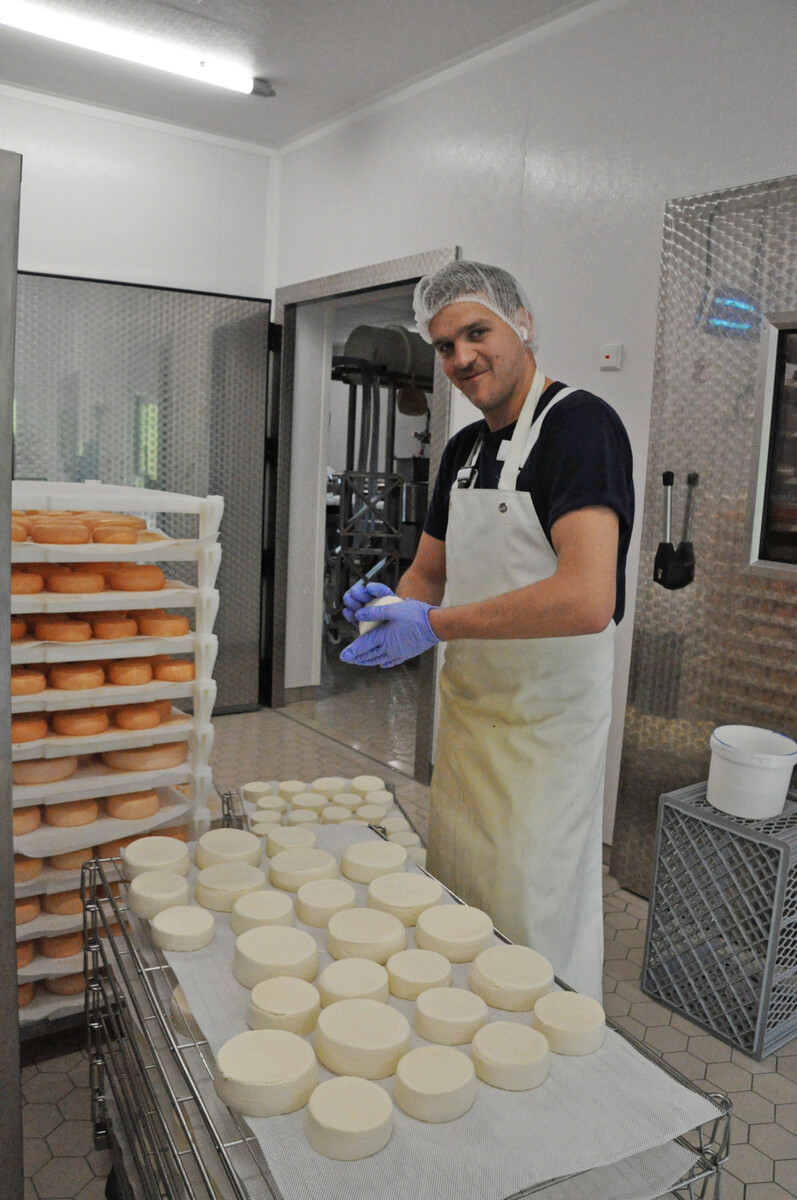 Die Milchbauern haben sich zu einer Demeter-Liefergruppe zusammengeschlossen. Die Schafsmilch beziehen die Mauchers von einem Schafhalter in Oberreute-Zellers, vom Schäflehof der Familie Grabherr. Kurze Lieferwege und persönliche Kontakte vom Milcherzeuger zum Milchabnehmer geben auf beiden Seiten Produktionssicherheit. „Da braucht es keine Lieferverträge, keine Vertragslaufzeiten. Wir machen alles mündlich ab. Uns reicht ein Handschlag“, sagt Georg Maucher. Jährlich verarbeiten die Mauchers rund 500.000 Kilogramm Milch zu fünfzehn Sorten Kräuterkäse, darunter mit Bärlauch, Pfeffer, Chili und Kümmel. Eine besondere Spezialität ist der Spitzbua, ein rotgeschmierter Weichkäse.