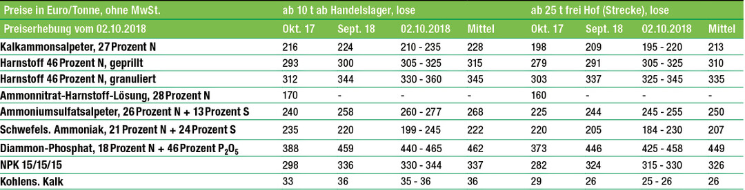 Einkaufspreise der Landwirte für Düngemittel in Süddeutschland