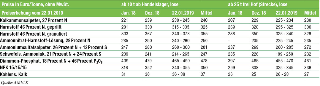 Einkaufspreise der Landwirte für Düngemittel in Süddeutschland Veröffentlicht am Erschienen am 02.02.2019 erschienen in BW Wochenblatt 05#322019 Sie haben ein BBZ-Abo oder ein BWagrar Digital-Abo? Sie haben ein BWagrar Print-Abo? Rabattiertes BWagrar Digital-Upgrade bestellen Weiterlesen mit Digital-Abo... BBZ Digital Probe-Abo Die Regionalausgabe BBZ als E-Paper 3 Tage vor der gedruckten Ausgabe Alle BWW+ Inhalte auf bw-wochenblatt.de Aktuelle Marktdaten und Marktberichte Endet automatisch nach 4 Wochen jetzt 4 Wochen testen 8,00 EUR / 4 Wochen BWagrar Digital Probe-Abo Die Regionalausgabe BWagrar als E-Paper 3 Tage vor der gedruckten Ausgabe Alle BWW+ Inhalte auf bw-wochenblatt.de Aktuelle Marktdaten und Marktberichte Endet automatisch nach 4 Wochen 8,00 EUR / 4 Wochen Aus der Branche WERBUNG ARNOLD – die frühe Sojabohne mit amtlich bestätigter Ertragsstärke Barrierefreiheits-Menü Schriftgröße Normal Zurücksetzen Kontrast Normal Hoch Normal Menü sichtbar Ja Nein Ja Über den ersten Skip-Link der Seite „Barrierefreiheits-Einstellungen“ können Sie das Menü jederzeit wieder einblenden. Einstellungen Alles zurücksetzen Ort �ndern Geben Sie die Postleitzahl Ihres Orts ein. Ort �ndern