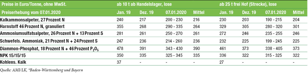 Einkaufspreise der Landwirte für Düngemittel in Süddeutschland*