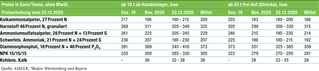 Einkaufspreise der Landwirte für Düngemittel in Süddeutschland*