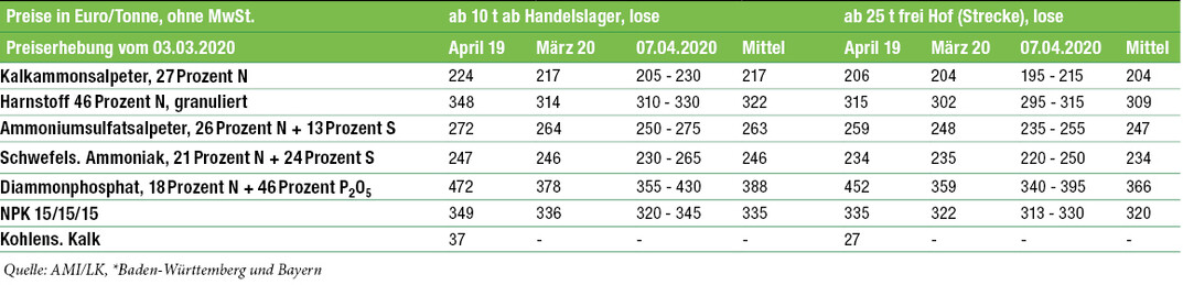 Einkaufspreise der Landwirte für Düngemittel in Süddeutschland*