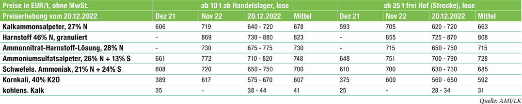 Einkaufspreise der Landwirte für Düngemittel in Süddeutschland