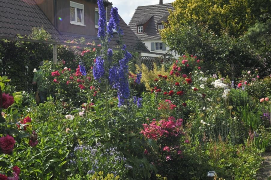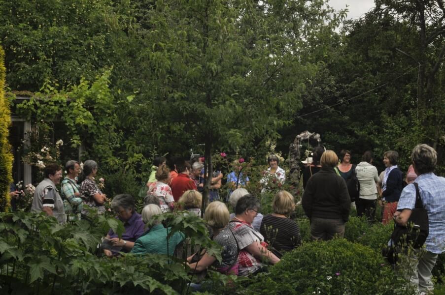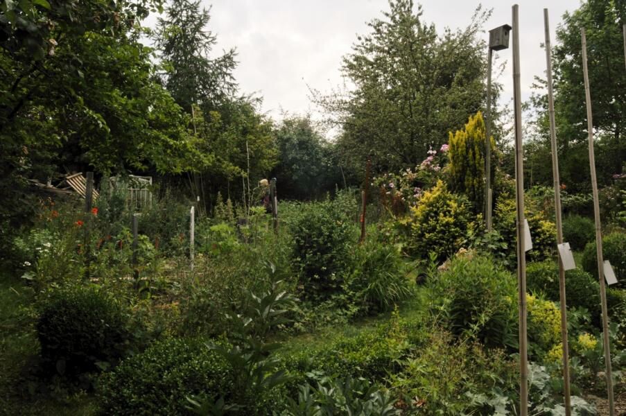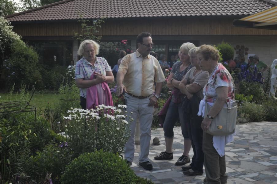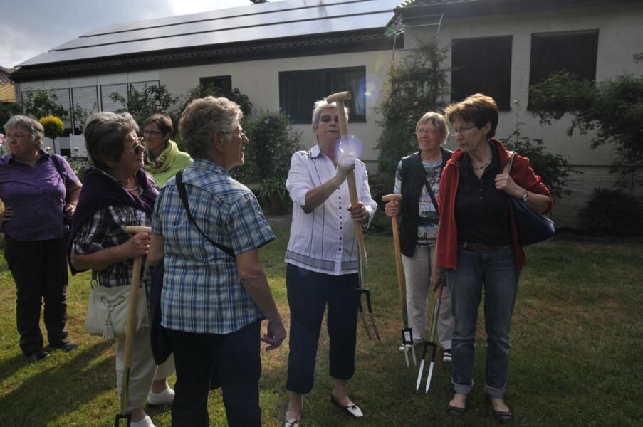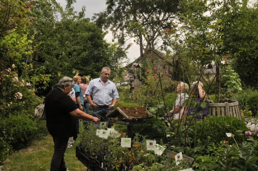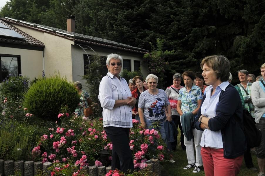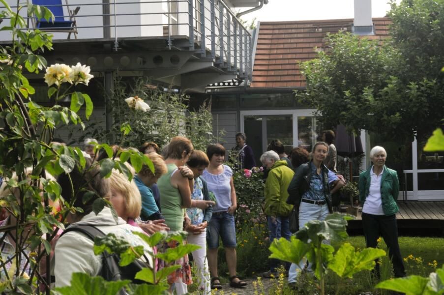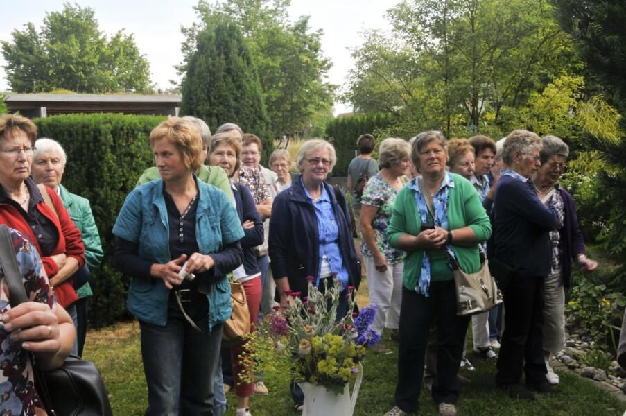 Erste Station war der 1000 Quadratmeter große Garten von Marianne Schönle in Unlingen. Er ist eine Mischung zwischen Nutz- und Ziergarten mit Sitzgelegenheiten, Teich und altem Baumbestand.
