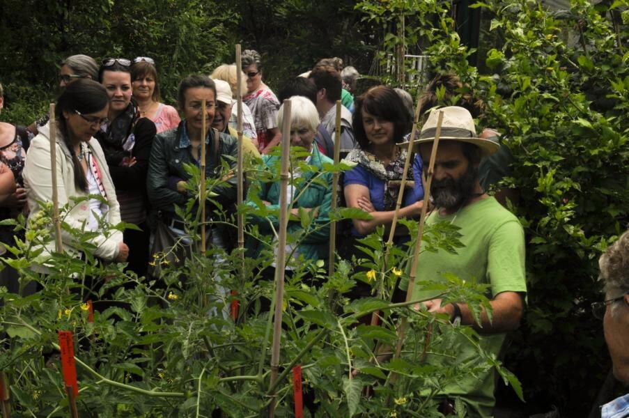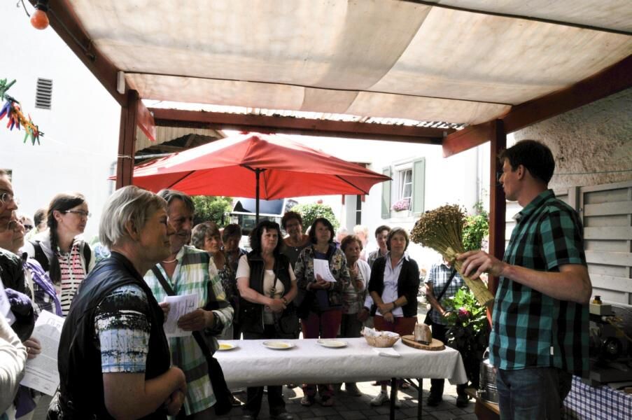 Nach dem Mittagessen auf dem Bussen, dem heiligen Berg Oberschwabens, zeigte uns der Garten- und Landschaftsgestalter Michael Schick in Bronnen seinen Kräutergarten mit historischen Gemüsesorten und 300 verschiedenen Tomatensorten. Beim Bruder, Peter Schick ebenfalls Garten- und Landschaftsbauer, gab es neben einem kleinen Schaugarten-Rundgang leckeren Kuchen und Kaffee in Achstetten-Bronnen.