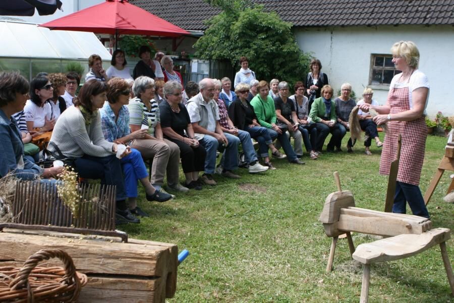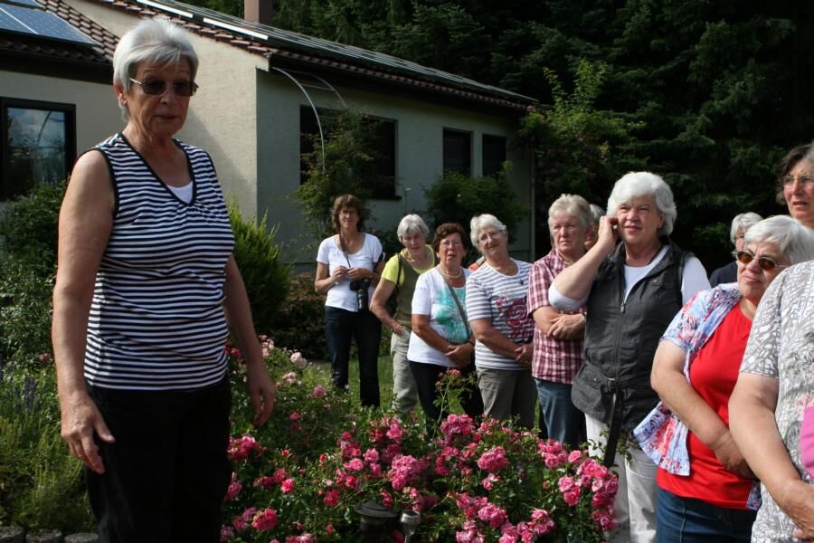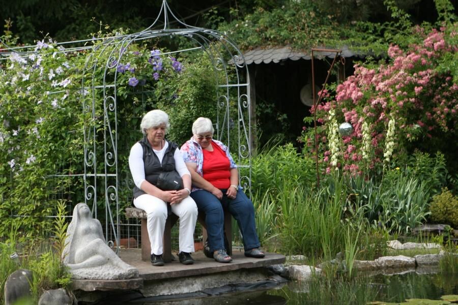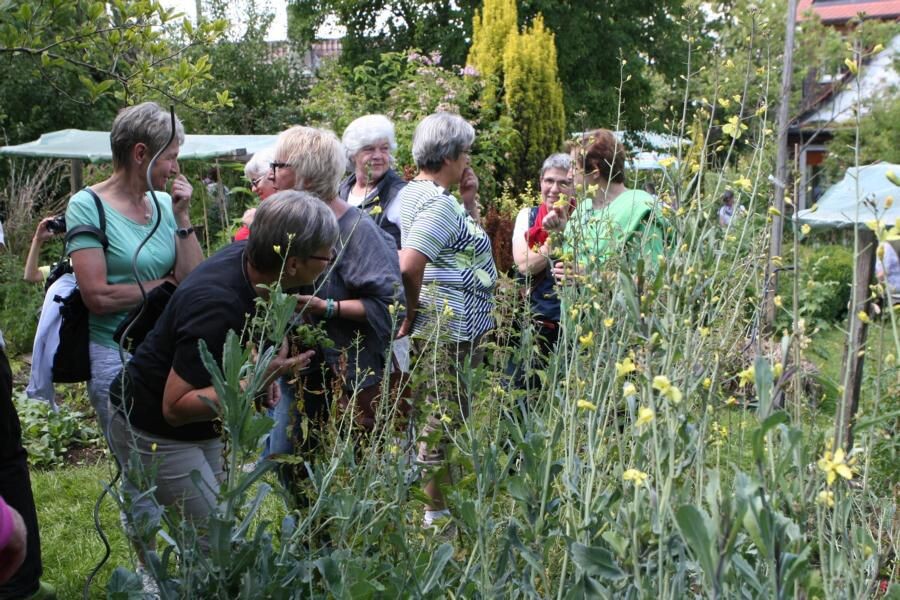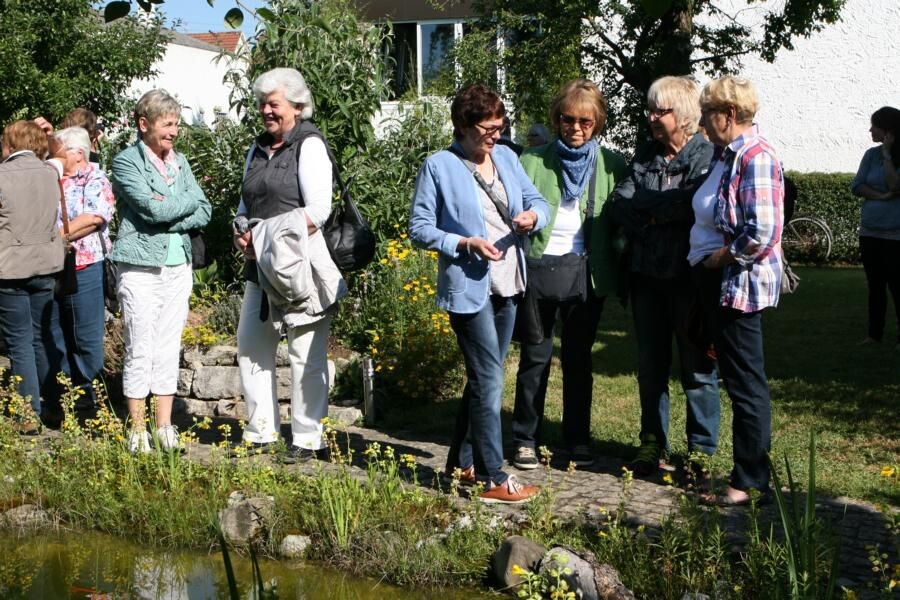 Erste Station war der 1000 Quadratmeter große Garten von Marianne Schönle in Unlingen. Er ist eine Mischung zwischen Nutz- und Ziergarten mit Sitzgelegenheiten, Teich und altem Baumbestand.