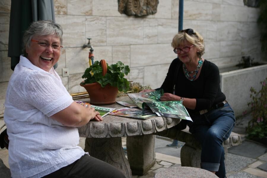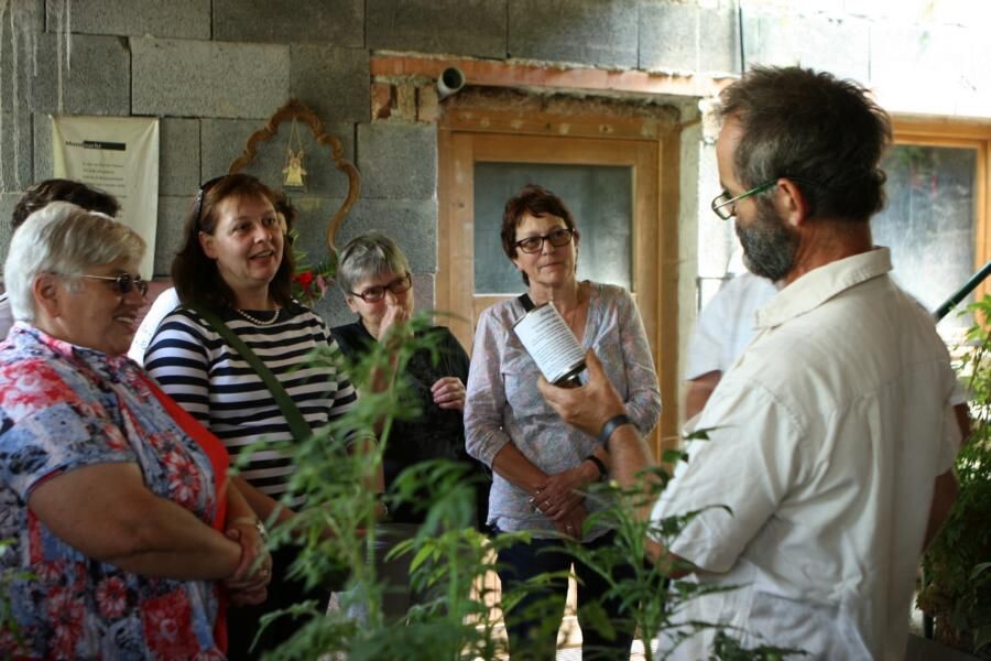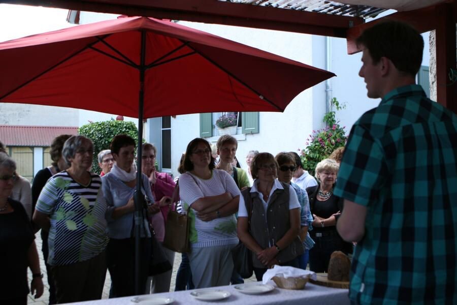 Nach dem Mittagessen auf dem Bussen, dem heiligen Berg Oberschwabens, zeigte uns der Garten- und Landschaftsgestalter Michael Schick in Bronnen seinen Kräutergarten mit historischen Gemüsesorten und 300 verschiedenen Tomatensorten. Beim Bruder, Peter Schick, ebenfalls Garten- und Landschaftsbauer, gab es neben einem kleinen Schaugarten-Rundgang leckeren Kuchen und Kaffee in Achstetten-Bronnen.