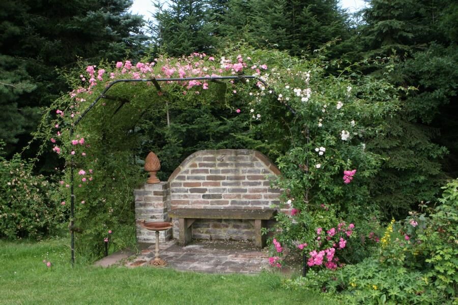 Ein kleiner Höhepunkt auch der Garten von Hannelore und Roland Birkel in Bußmannshausen. Auf 4000 Quadratmetern wachsen Stauden und Rosen, Clematis und Pflanzen von der Insel Madeira um einen Seerosenteich mit Koi-Karpfen sowie Bau- und Kunstwerken aus eigener Herstellung.