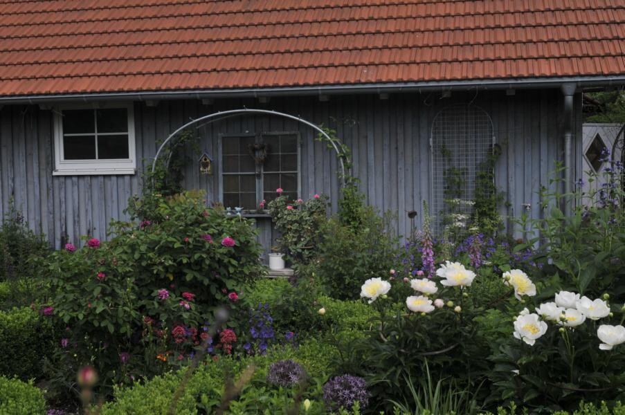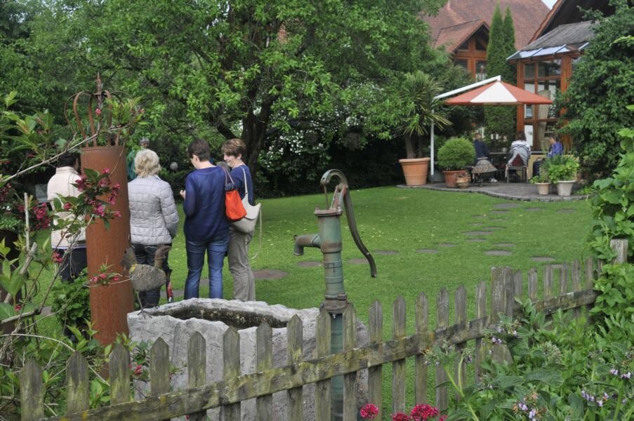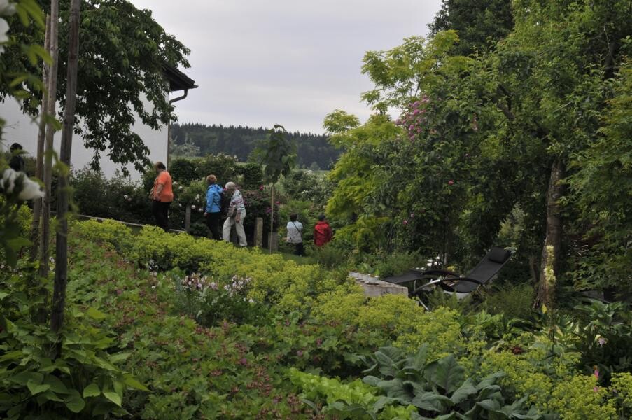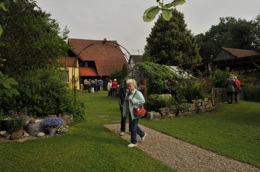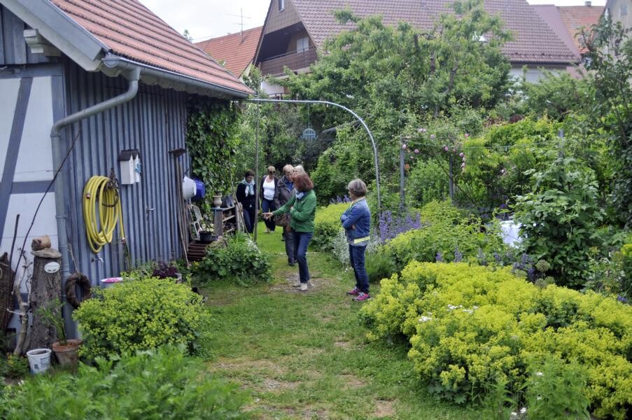 Die Gartenfahrt Süd führte die Teilnehmer ab Ravensburg und Bad Waldsee auf die Schwäbische Alb und in Richtung Federsee. Gartenführerin Rita Goller hatte wieder einen bunten Querschnitt von Gärten ausgesucht. Die parkähnliche Anlage von Andrea Daiber in Alleshausen bei Bad Buchau entstand auf einer nassen Riedwiese. Viele Kräuter, Obst- und Gemüsesorten sowie verschiedene Biotope auf engem Raum vereint der Garten von Lonie und Rolf Geigle in Bad Urach-Hengen. Rosen verzaubern neben Hortensien, Clematis, Farnen und Hosta das Reich von Elsbeth Mayer in Bad Urach-Wittlingen, während Marianne Gekeler in Römerstein-Böhringen auf ihren Staudengarten und den Buchsgarten mit Dahlien stolz ist.