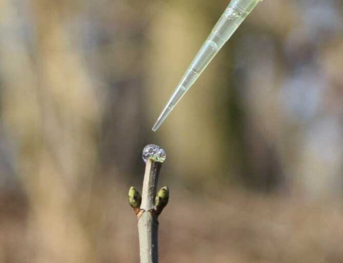 "Bricht ein Ast oder eine Knospe dagegen ab, ohne dass ein Reh am Werk war, kurbelt der Baum weder seine Produktion des Signal-Hormons Salizylsäure noch die der Gerbstoffe an. Stattdessen bildet er vor allem Wund-Hormone", erklärt Bettina Ohse, die Erstautorin der Studie. Sie ist Doktorandin am Institut für Spezielle Botanik und Funktionelle Biodiversität der Universität Leipzig. Zu ihren Erkenntnissen kamen die Wissenschaftler, indem sie Bäumchen im Leipziger Auwald austricksten: Sie simulierten, dass ein Reh an ihnen gefressen hat, indem sie die Schnittstelle mit echtem Rehspeichel aus der Pipette beträufelten. Kurz darauf erfassten sie die Konzentration der Hormone und der Gerbstoffe im Bäumchen.