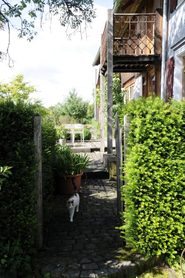 Petra und Wolfram Boppert haben das baufällige Gebäude beim Joggen das Bahnwärterhäuschen entdeckt. Das Ehepaar renovierte das Haus und legte rund herum einen kleinen Bauerngarten mit alten Rosensorten, Stauden und Sommerblumen an. Im ehemaligen Ziegenstall des Bahnwärters haben Bopperts außerdem ein Backhaus eingerichtet, das nun einmal im Monat zum Backtag angefeuert wird.