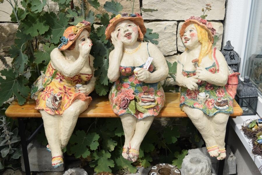 Bei Judith Koesel domieren die Kunstfiguren. Sie schafft Vögel, Menschen und viele weitere Objekte aus Keramik, die im ganzen Garten verteilt sind. Ihr Mann ist Gärtnermeister und pflegt den Hanggarten in Sigmaringen. Über mehrere Stufen reihen sich Blumen und Ausstellungsstücke aneinander, bevor der Traumgarten in einer ebenen Fläche endet. Gewächshaus und Staudengarten fügen sich gut mit einer gemütlichen Sitzecke zusammen und laden zum bleiben ein.
