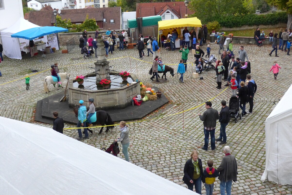 Im Schlosshof wird Honig geschleudert und Kraut gehobelt. Bei der Verarbeitung von frisch geernteten Krautsköpfen können Kinder und Erwachsene selbst mit Hand anlegen. Für das gehobelte Kraut, das zuhause als Krautsalat oder Sauerkraut auf den Tisch kommt, sollte ein Gefäß mitgebracht werden. Die „Eselsmühle“ hat unterschiedlichste Brotsorten im Angebot. Beim Probieren lässt sich der Geschmack verschiedener Getreidesorten entdecken.