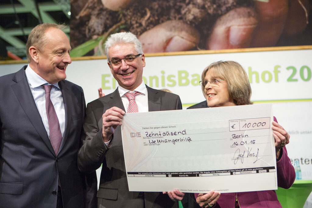 Zusammen mit Bärbel Dieckmann und Dr. Josef Krapf eröffnete der Bauernpräsident die Spendenaktion des ErlebnisBauernhofes zugunsten der Welthungerhilfe.