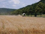 Bei Familie Reutter wird die Wintergerste - mit dem Drusch begann der Betrieb am Samstag, 11. Juli 2015 - auf dem Hof eingelagert und als Futter in der Tierhaltung verwendet. Der vielseitige aufgestellte und organisierte Betrieb hält unter anderem Milchvieh und Pferde.