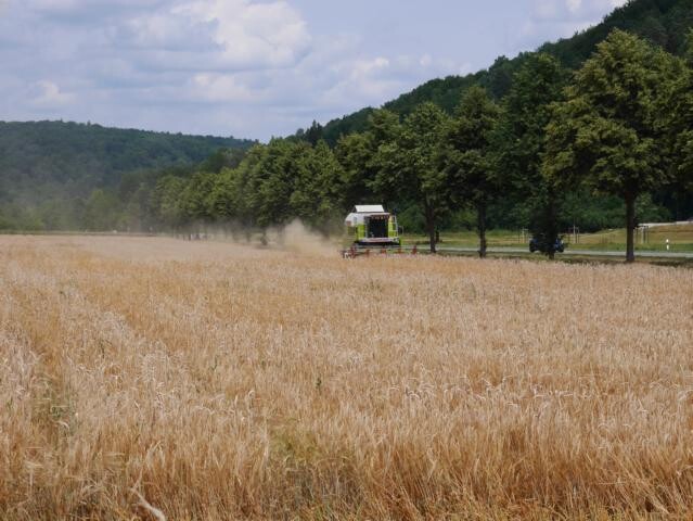 Die langanhaltende Trockenheit wirkt sich im Ertrag aus. Korneinlagerung und teils Ährenanlage sind oft reduziert. Bei vielfach heißem Sommerwetter kommt die Gerste wenigstens trocken in den Tank und in die Futtersilos.