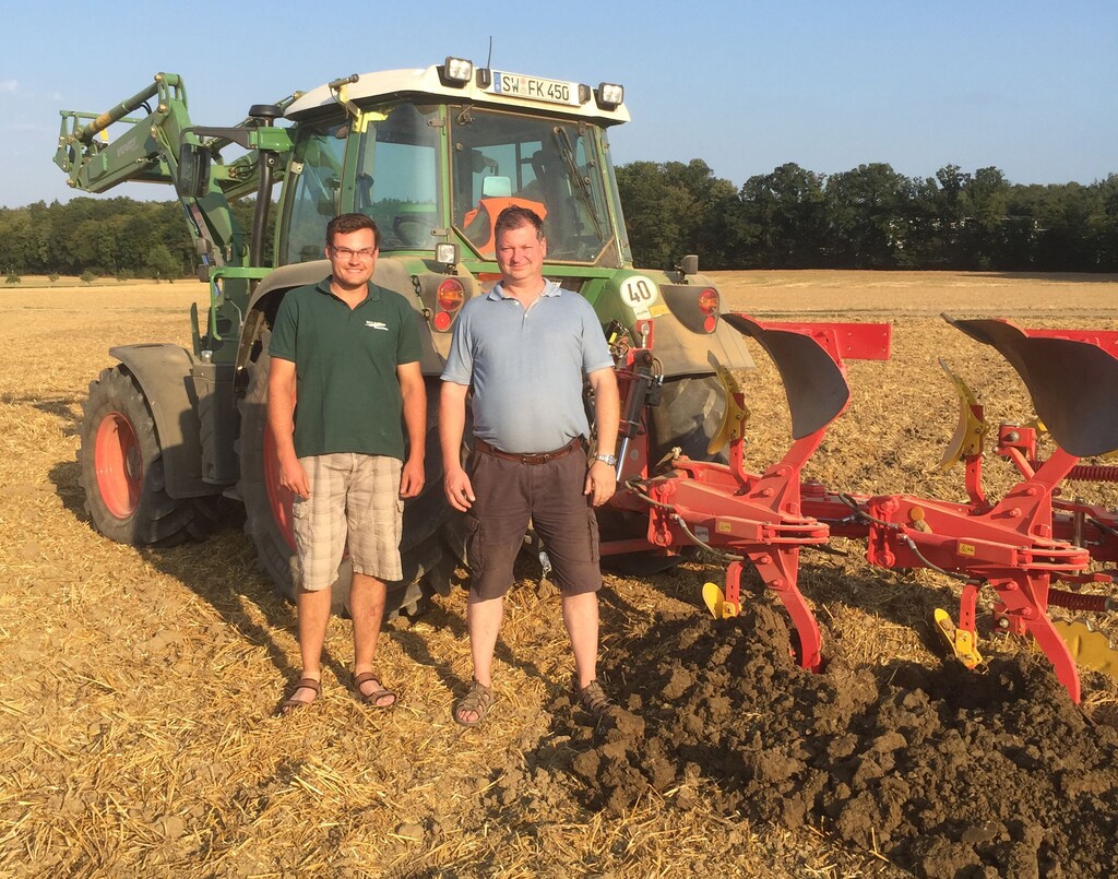 Auf dem Gut Mariaburghausen in Haßfurt (Unterfranken) haben Betriebsleiter Klaus Merkel und DLG-Versuchsfeldleiter Florian Eißner die erste „Pflugfurche“ für die DLG-Feldtage 2016 gezogen. Auch wurden den Ausstellern am 11. August ihre Versuchsfeldparzellen offiziell übergeben. Damit hat die heiße Vorbereitungsphase für das im kommenden Jahr vom 14. bis 16. Juni stattfindende pflanzenbauliche TOP-Ereignis begonnen.