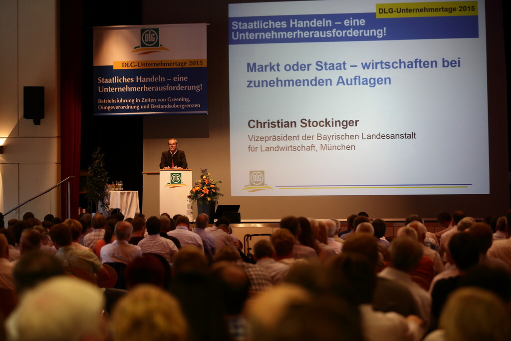 Die Land- und Ernährungswirtschaft möge mit Verstand und rationaler Bewertung mit der unweigerlich gegebenen und zukünftig noch zunehmenden Einmischung von Politik und Verwaltung umgehen. Hierzu rief Christian Stockinger auf den DLG-Unternehmertagen am 1. September 2015 in Regensburg auf. Die Vermutung, dass die Förderungen der EU in der nächsten Periode noch weniger als heute einkommensstützenden Charakter haben und statt dessen mit regionalpolitischen und damit gesamtgesellschaftlichen Zielen begründet werden, sei naheliegend. „Je mehr die Flächenprämien der EU dem Charakter nach der 2. Säule zuzuordnen sind, umso mehr werden Gegenleistungen gefordert und deren Einhaltung überprüft“, ist sich Stockinger sicher. In letzter Konsequenz stelle sich die Wahl zwischen EU-Prämien mit Cross Compliance oder Wegfall der Transferleistungen. Nach Auffassung von Stockinger ist die Bedeutung der Ausgleichszahlungen von EU, Bund und Ländern für das Gesamteinkommen der deutschen Landwirtschaft viel zu hoch und damit für die internationale Wettbewerbsfähigkeit entscheidend, als dass man leichtfertig deren Reduzierung oder gar ersatzlose Streichung fordern könnte.