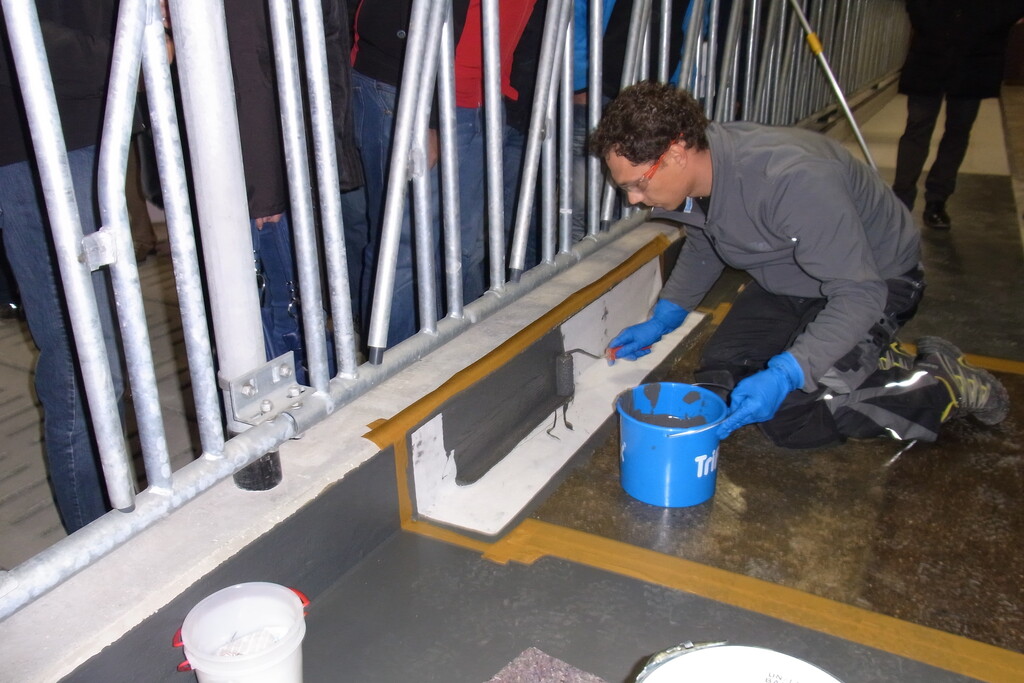 In Verbindung mit Zuschlagstoffen lasse sich eine hohe Abriebfestigkeit oder Rutschemmung erreichen. Durch das Einbauen von sogenannten Terazzo-Effektchips werden optisch Akzente gesetzt und die Rutsch-hemmung (nicht geprüft) erhöht. Entscheidend für den Erfolg der Sanierung sei in diesem Zusammenhang die Vorbereitung des Untergrundes, machte Steinhauser bei der Vorführung deutlich. Selbsteinbau ist möglich. Kostenpunkt: 35 Euro pro Quadratmeter (Neubau), 55 bis 70 Euro pro Quadratmeter (Sanierung).