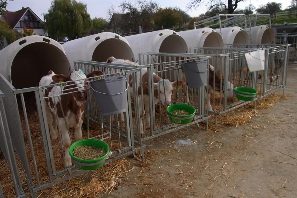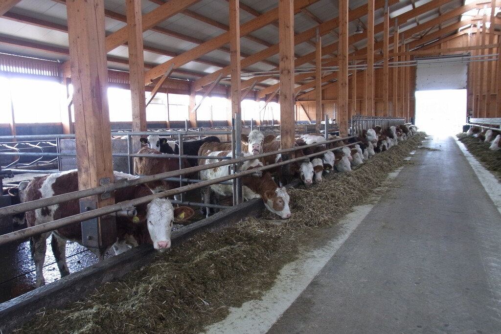 In dem Großraumiglu bleiben die weiblichen Kälber acht bis zwölf Wochen lang.Von dort können sie täglich auf die angeschlossene, zirka 0,25 Hektar große Weidefläche. Danach geht es für die Nachwuchskühe in eine geräumige Tiefstreubucht auf einer Seite des Boxenlaufstalles. Die männlichen Kälber werden separat aufgestallt und nach zirka vier Wochen an Bullenmast-betriebe verkauft.