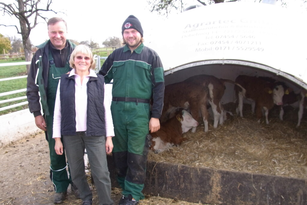 „Die Idee, die Kälber auf die Weide zu lassen“, stammt von mir“, erzählt er, „und hat meinen Vater anfangs nicht begeistert.“„Ja“, räumt der 62-Jährige lächelnd ein, „ich dachte, Milchaus-tauscher und frisches Gras passen nicht zusammen und hatte Angst dass die Kälber davon Durchfall bekommen“. Aber, so fügt der rührige Landwirtschaftsmeister hinzu, er habe sich eines Besseren belehren lassen. „Inzwischen begeistert es mich, die Kälber draußen zu sehen.“ Die Gründe liegen für Vater und Sohn auf der Hand: Auf der Weide könnten die Kälber könnten ihr natürliches Bewegungsbedürfnis ausleben. Das fördert die Gesundheit der Jungtiere und mache sie später zu robusten und leistungsfähigen Milchkühen.