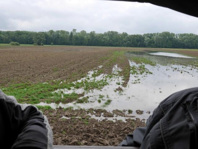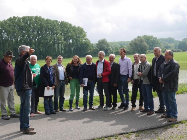 Während Christian Coenen, der Sohn des früheren Kreisvorsitzenden, den Traktor mit Anhänger durch die Inselwege steuert, erklärt Polder-Experte Karl-Peter Schwall an den angefahrenen Stationen auf Elisabethenwört die Auswirkungen des geplanten Retentionsprojektes mit seinen verschiedenen Varianten auf die Landwirtschaft. Auf welche Weise auch immer die vorgesehene ökologische Flutung ermöglicht würde, durch Damm-Rückverlegung oder steuerbare Polder, die landwirtschaftliche Nutzung sei dann ganz überwiegend nicht mehr möglich.