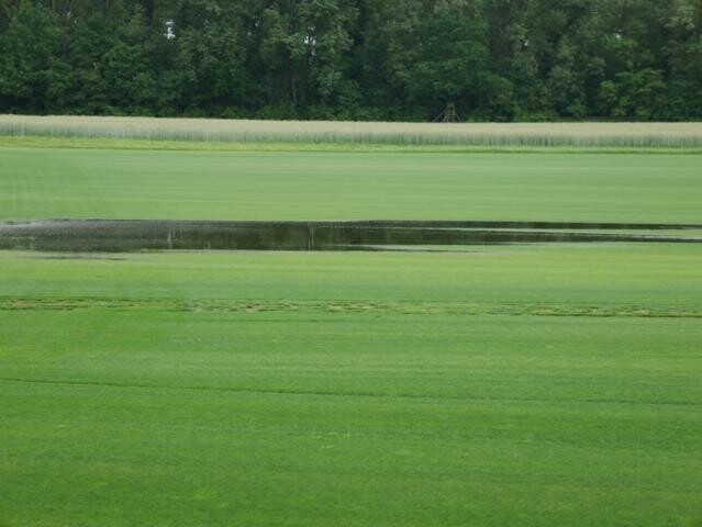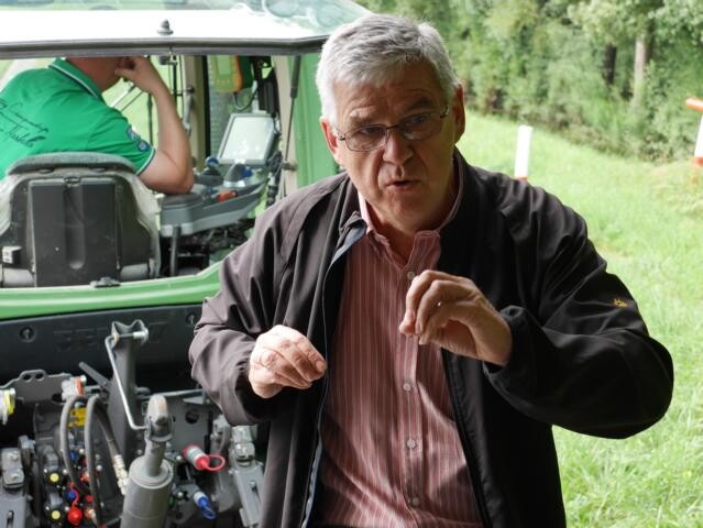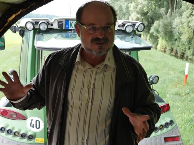 Auf Elisabethenwört sind zwei Betriebe mit Schwerpunkt Ackerbau und Rollrasen auf insgesamt rund 200 ha Nutzfläche betroffen. Betriebsleiter Konrad Sauer, der die landwirtschaftliche Nutzung in dem vorgesehenen Retentionsgebiet erläutert, bangt um den Fortbestand seines Betriebes, wenn die Planung mit der ökologischen Flutung realisiert wird.
