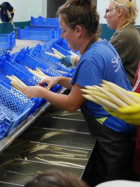 Knapp 20 km Wegstrecke entfernt, auf seinem Spargelhof in Graben-Neudorf, erklärt Betriebsleiter Uwe Kammerer die Folgen des Mindestlohn- und Arbeitszeitengesetzes auf Betriebe mit Sonderkulturen. Die Familie Kammerer hat auf ihrem Ackerbaubetrieb unter anderem auf rund 15 ha Spargel im Anbau und beschäftigt über 30 Saison-Arbeitskräfte aus Ungarn und Kroatien.